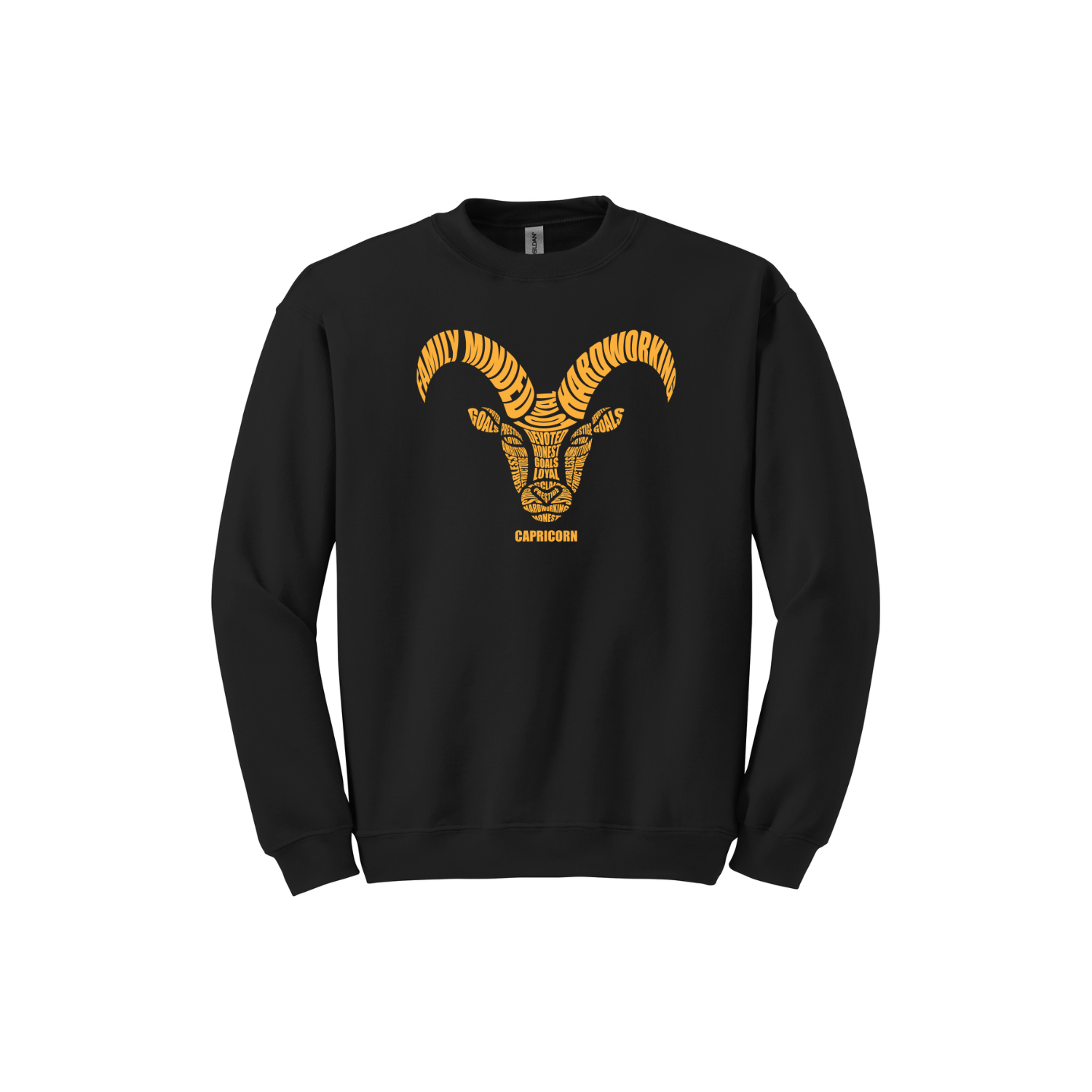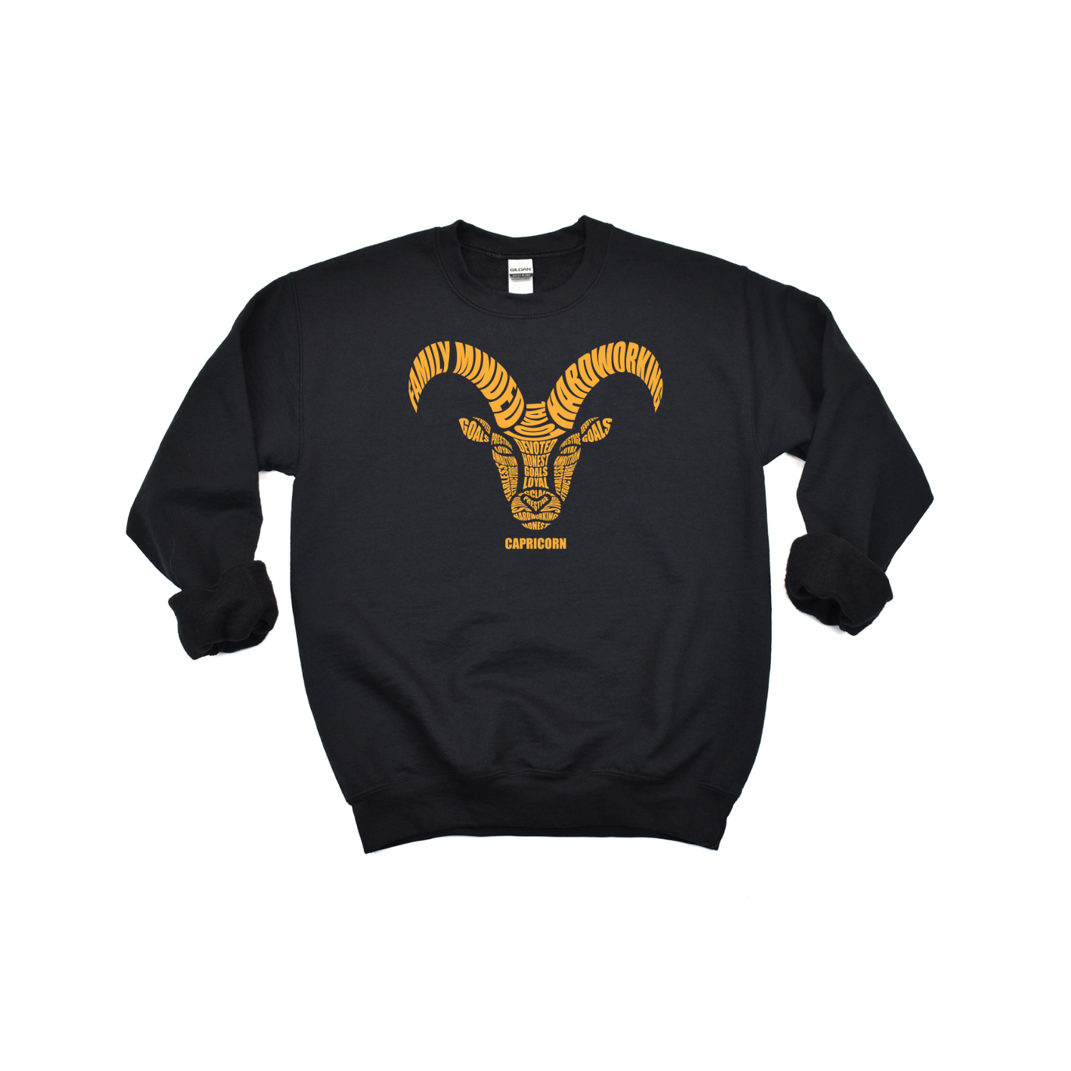 Climb every season in comfort and style with our Capricorn Mountain Goat Characteristics Crewneck Sweatshirt. Inspired by the determined spirit of the mountain goat, this cozy sweatshirt features a striking word-art design shaped like a goat and filled with defining Capricorn traits — including ambitious, disciplined, loyal, practical, patient, responsible, hardworking, resilient, determined, and more — capturing the essence of this earth sign with personality and flair.