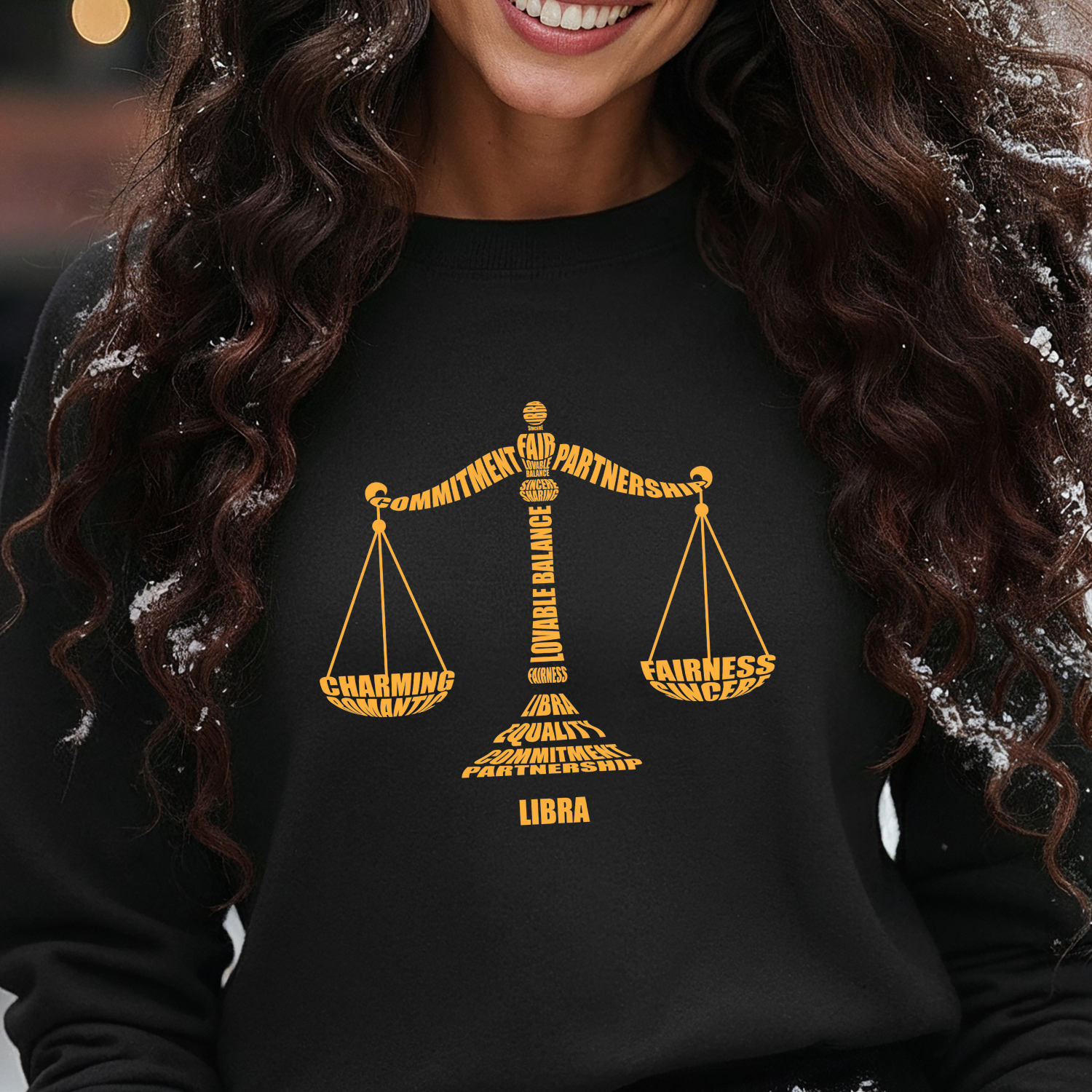 Balanced. Charming. Always graceful. Wear your sign with confidence in the Libra Scales Characteristics Crewneck Sweatshirt — where personality meets comfort. ♎️✨