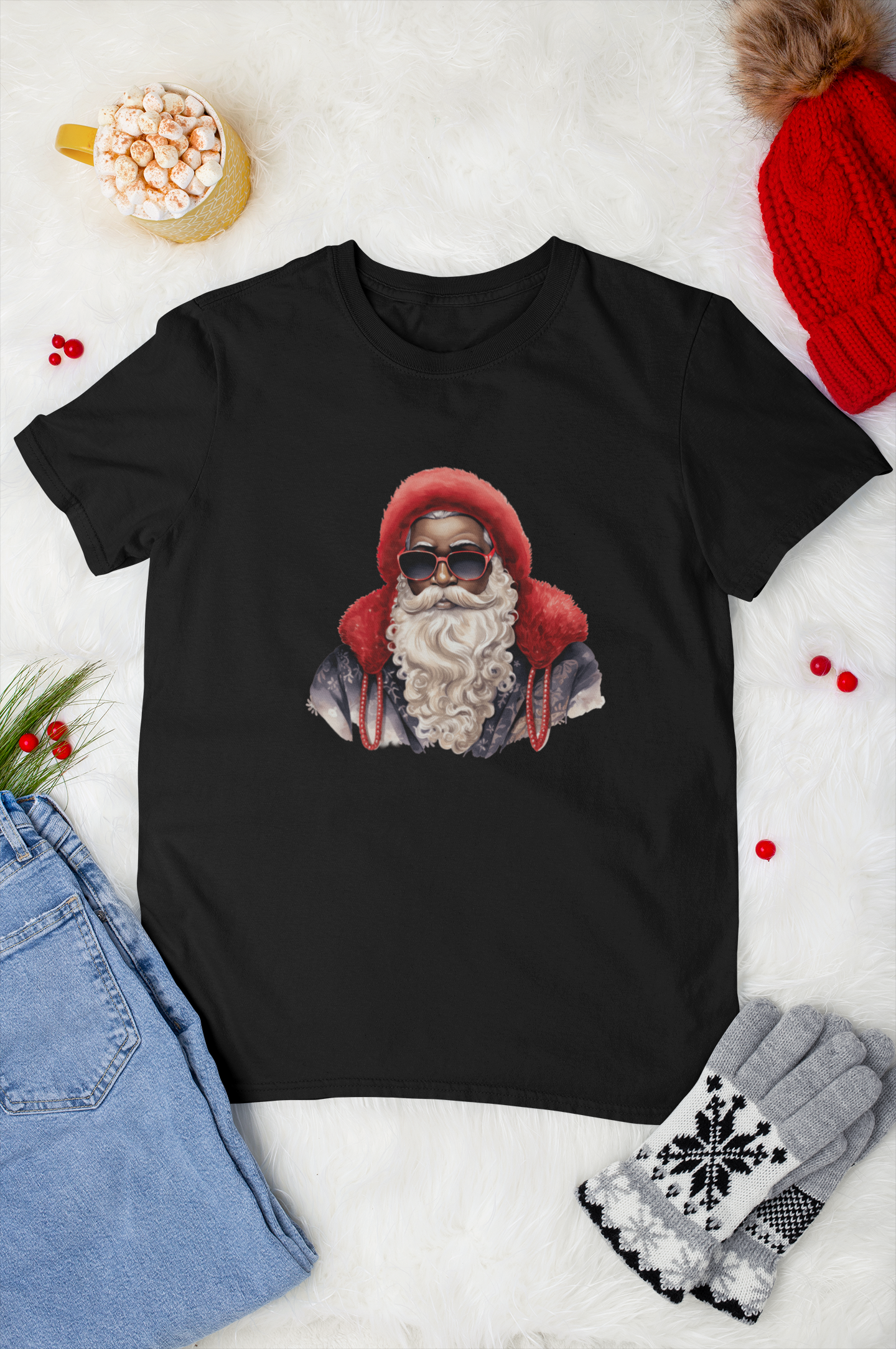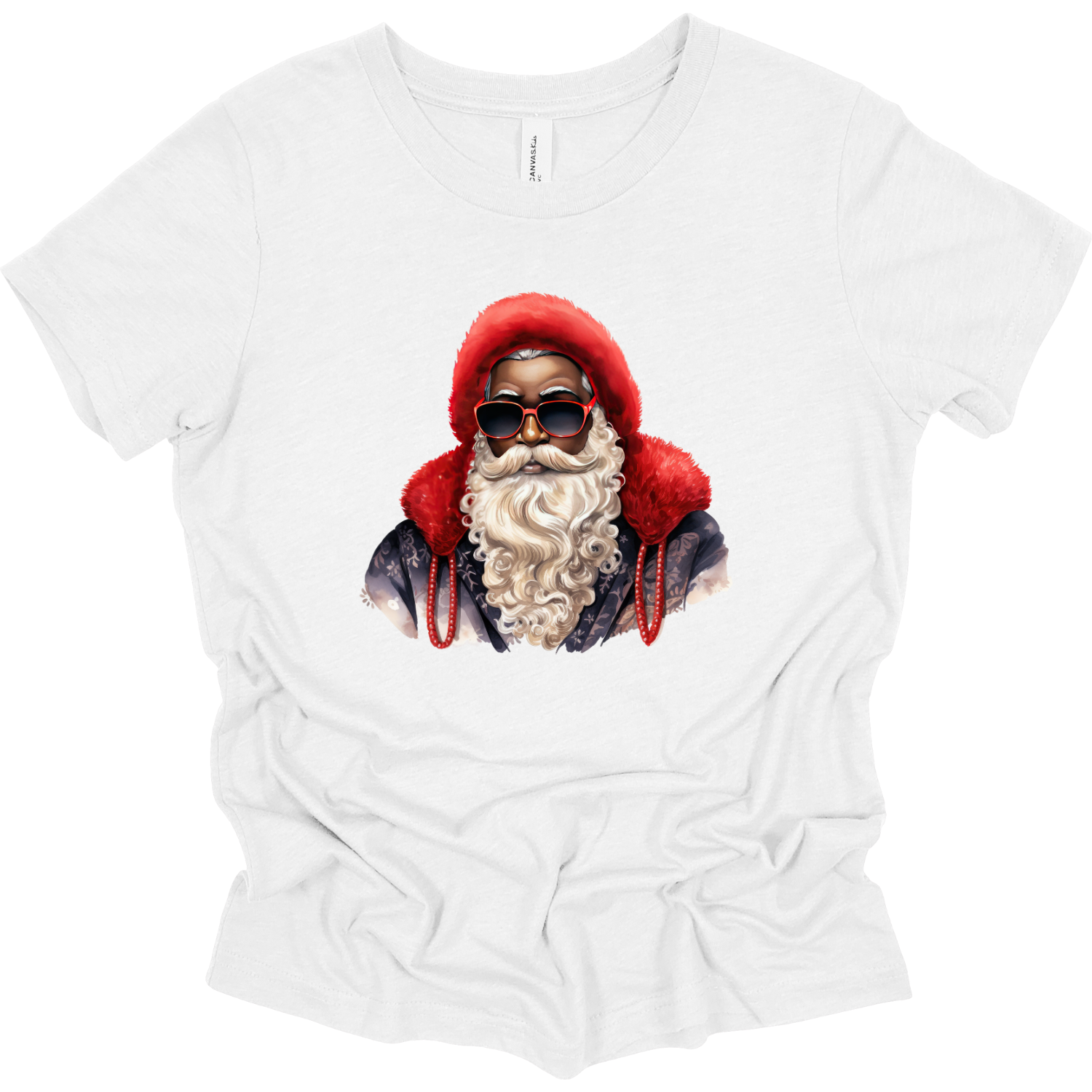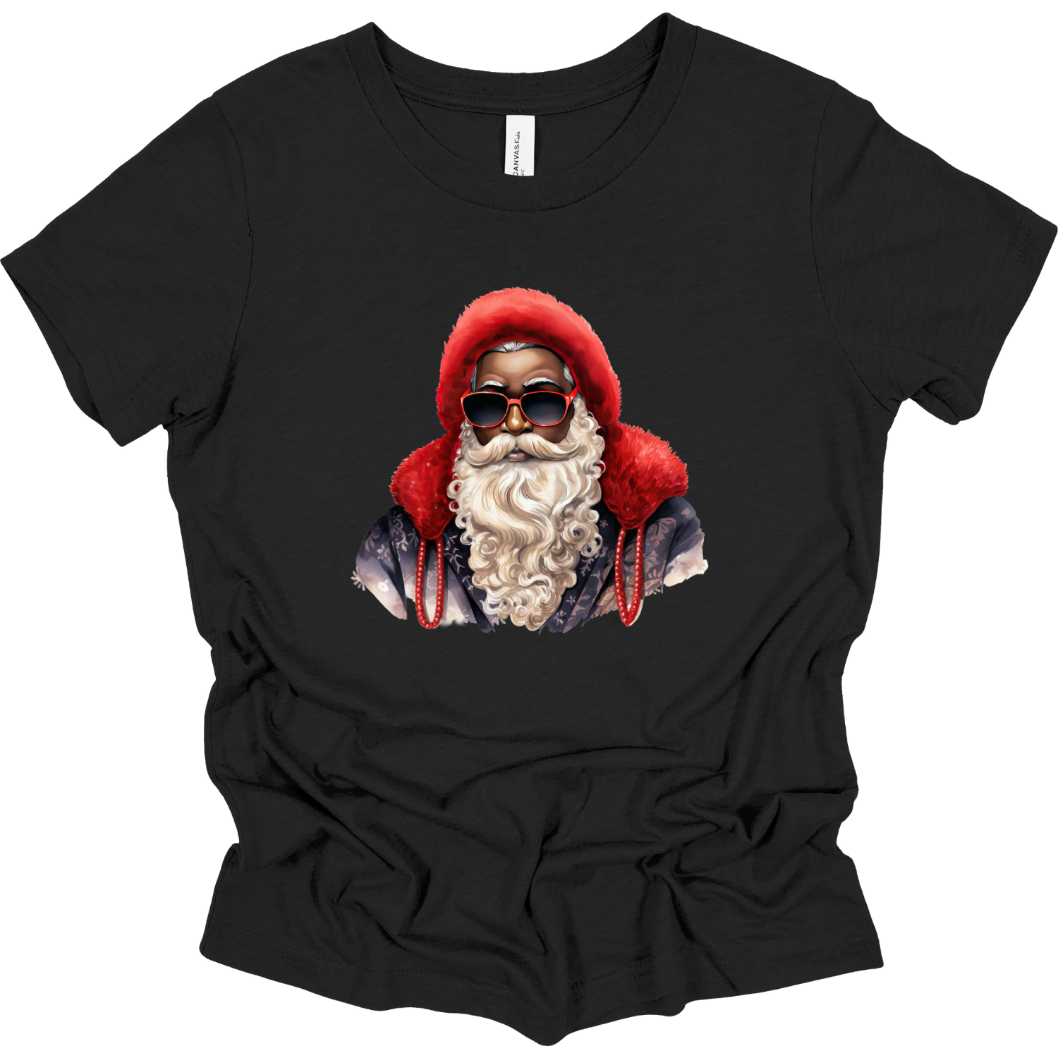 Let the kids join in the holiday fun with our Youth Red Hat Sunglasses Black Santa T-Shirt! This festive and playful tee features a cool Black Santa rocking his red hat and shades — perfect for little ones who love to celebrate the season in style.