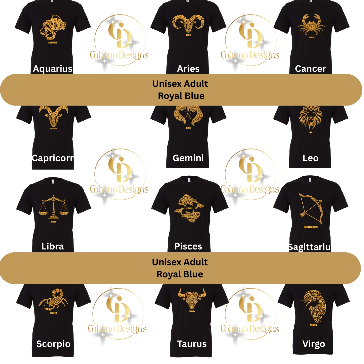 This single listing lets you choose your zodiac sign, shirt style, color, and size from easy dropdown menus, making it simple to find your perfect match or create a thoughtful, personalized gift.
